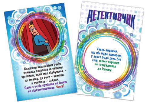«Детективчик» - це збірка добре ілюстрованих детективних загадок, розгадуючи які дітям належить проявити логіку, інтуїцію та образне мислення. Призначена для дітей від 6 років. Комплектація: ігрові картки - 30 шт., правила гри - 1 шт.