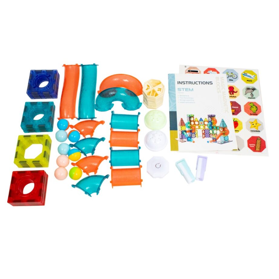 Набір включає 49 елементів з магнітом, за допомогою яких, використовуючи інструкцію або власну уяву, можна конструювати різноманітні фігури. Зібраний конструктор світиться у темряві. Елементи кріпляться один до одного, витримуючи багаторазове з'єднання. Також за допомогою даного конструктора можна сконструювати лабіринт і запускати в ньому кульку, граючи наввипередки (чия кулька прийде швидше). Використовуючи наклейки, що входять до складу набору, дитина може самостійно прикрашати елементи конструктора.
