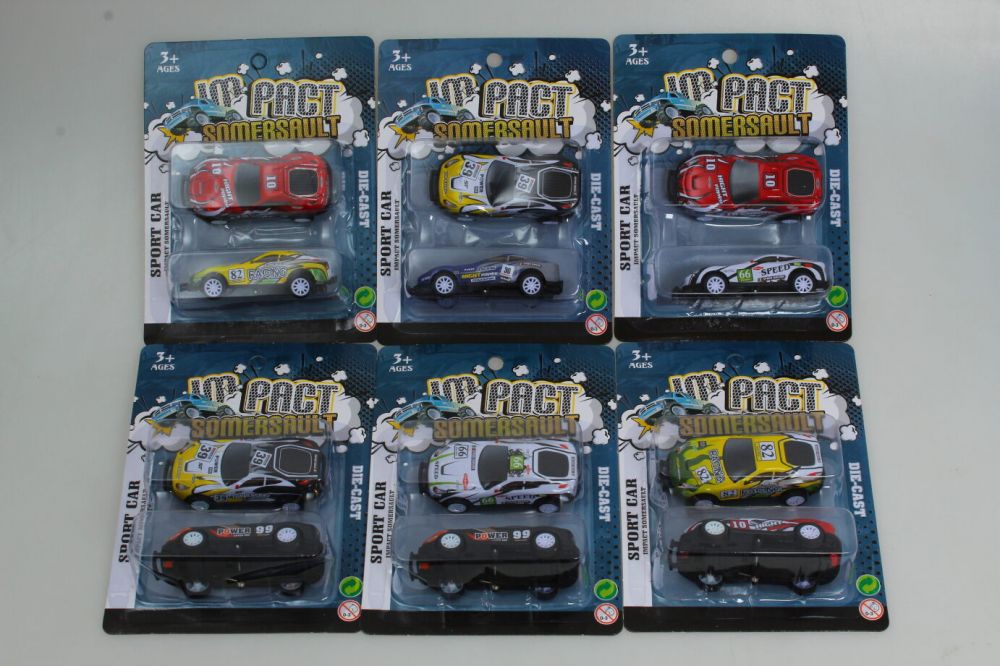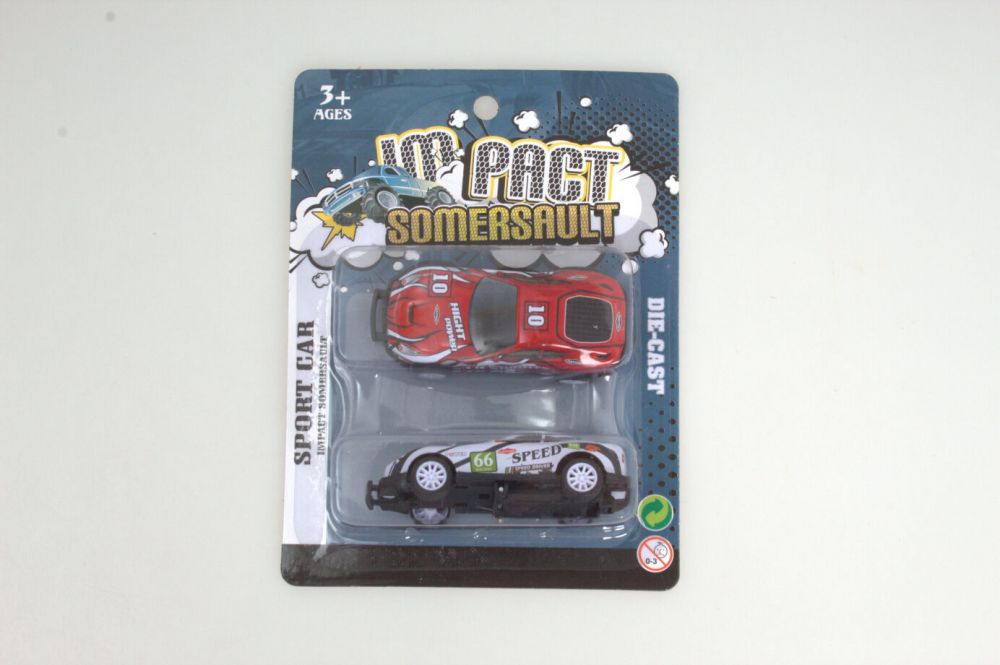 Набір із 2х металевих трюкових машинок, що перевертаються. Машинки оснащено інерційним механізмом, а також функцією "сальто". Для виконання трюку необхідно змінити положення пластини на дні машинки, зафіксувати її, відтягнути машинку назад та відпустити. Машинка виконає сальто зіткнувшись із перешкодою. Корпус машинки -металевий. Розмір: 7,8*3,5*2,3 см. 6 кольорів в асортименті.