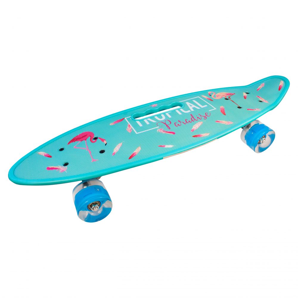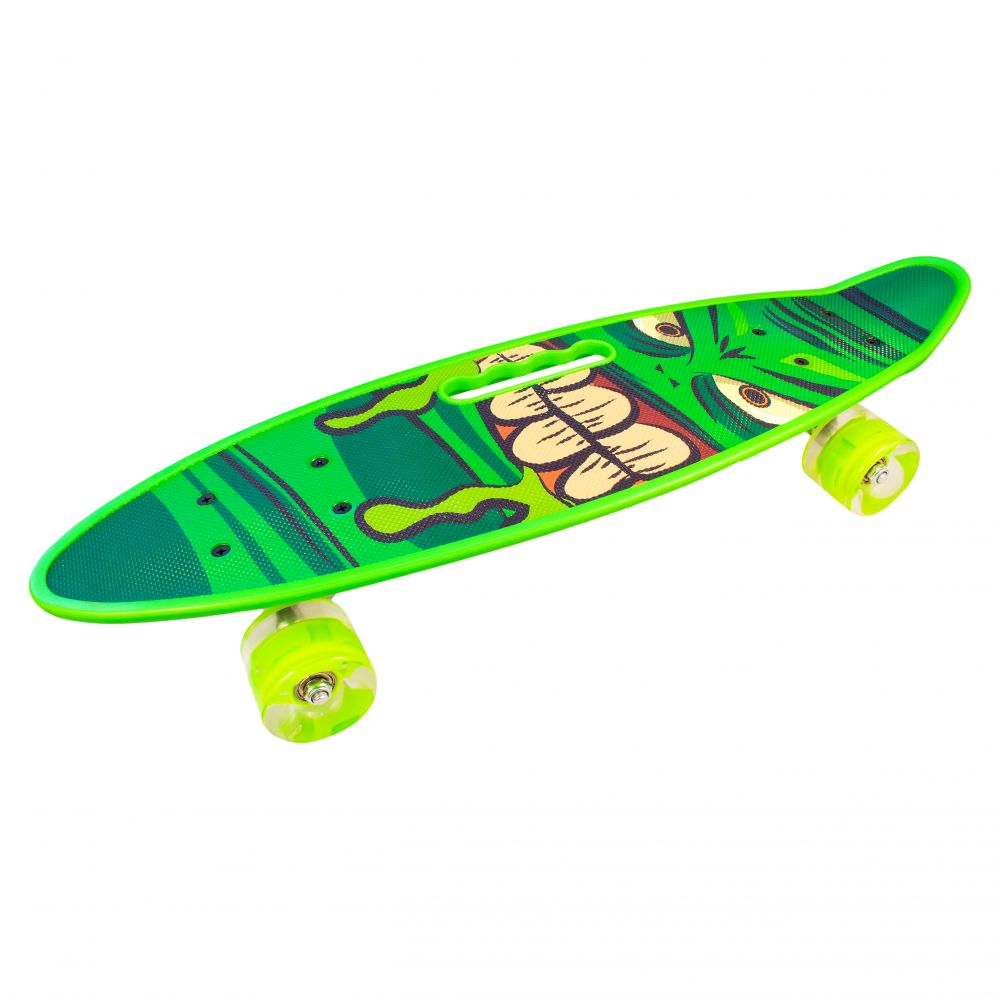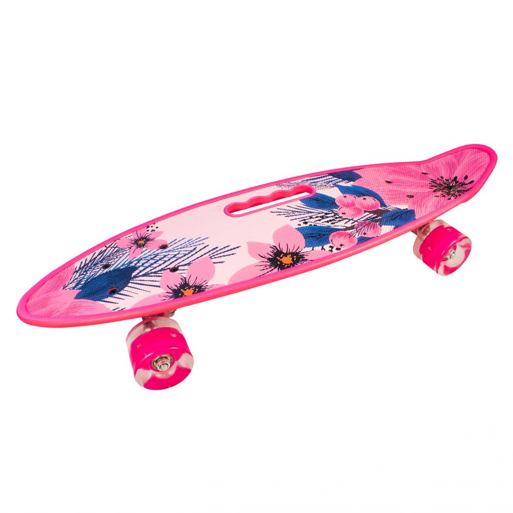 Скейтборд з колесами, що світяться, і з отвором для перенесення.