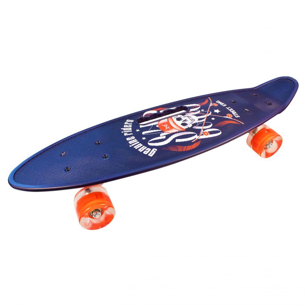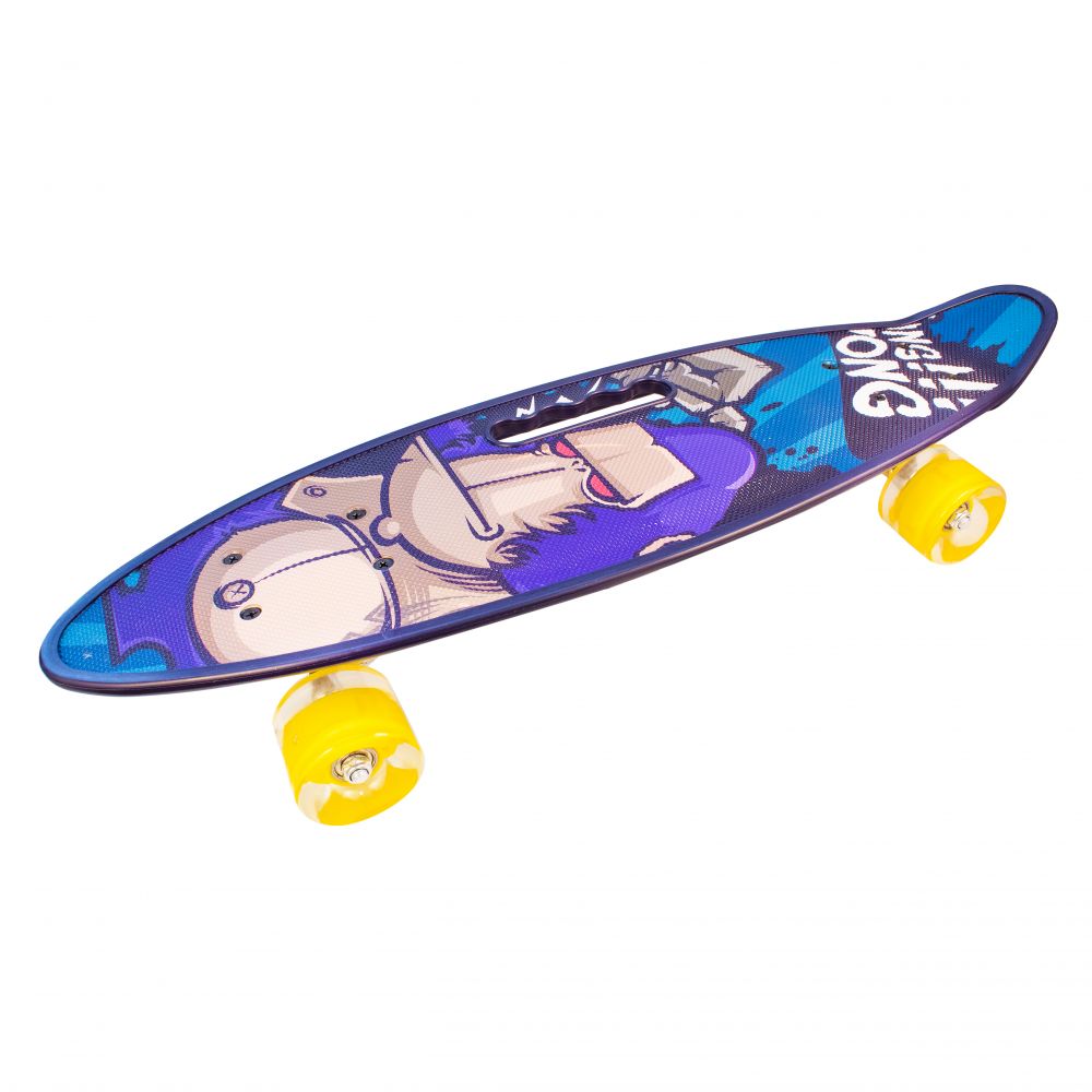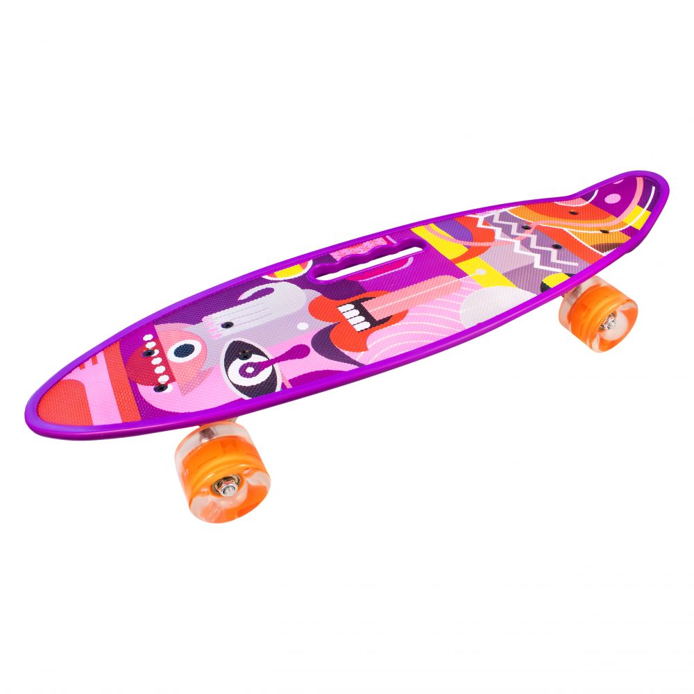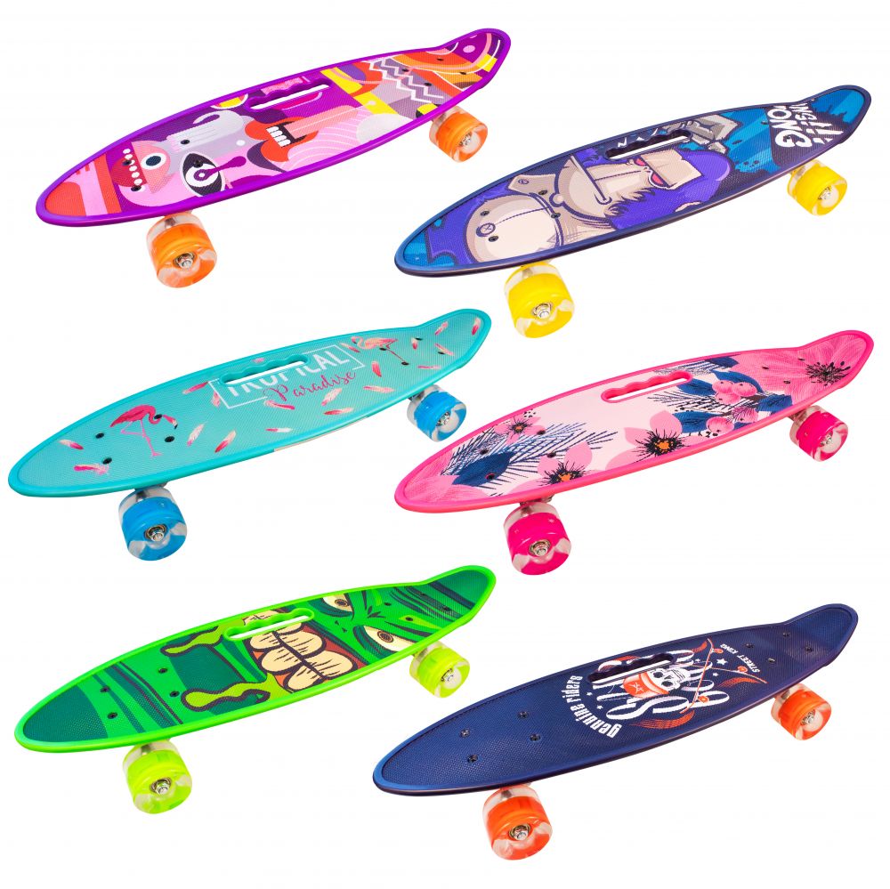 Скейтборд з колесами, що світяться, і з отвором для перенесення.