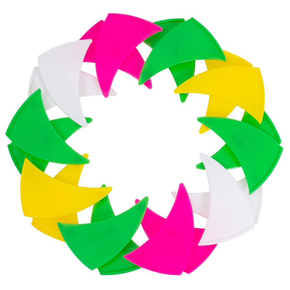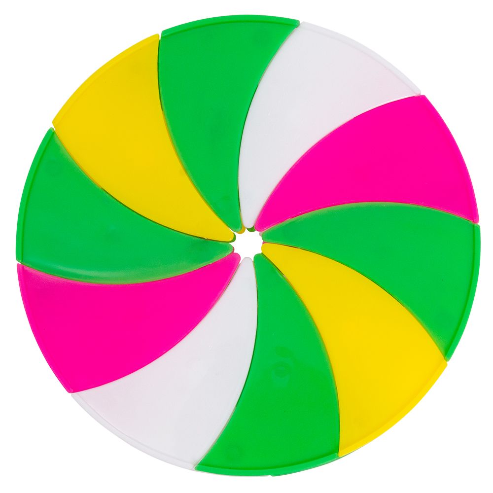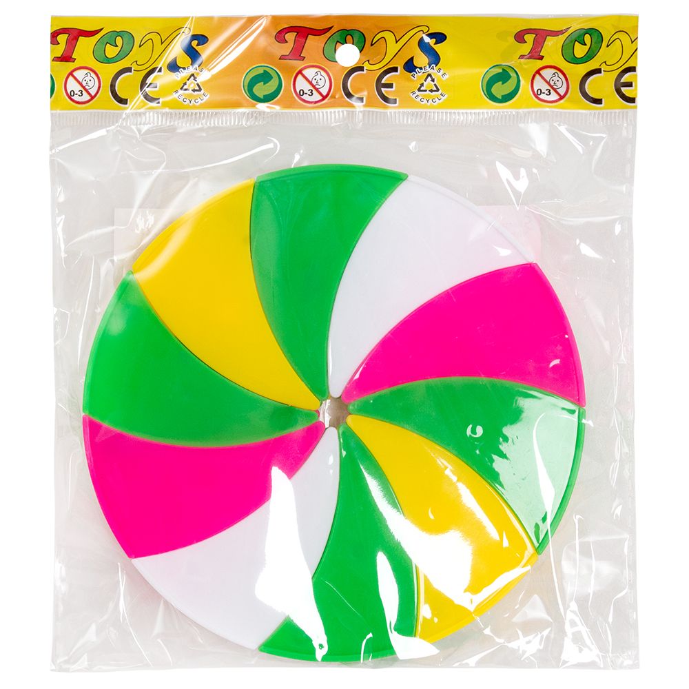 Яскрава та барвиста літаюча тарілка принесе багато радості, задоволення, викличе веселий сміх не лише у діток, а й у їхніх батьків, під час активних ігор на свіжому повітрі. Літаюча тарілка призначена для ігор на відкритому повітрі з дітьми, друзями або тваринами. Іграшка виконана з поліуретану, що забезпечує її легкість, дальність польоту та удароміцність. Іграшка фрісбі-трансформер розкривається у польоті. У складеному стані діаметр іграшки становить 12 см. При підкиданні іграшка трансформується в кільце діаметром 18,5 см, що складається зі з'єднаних між собою різнокольорових пластин.
