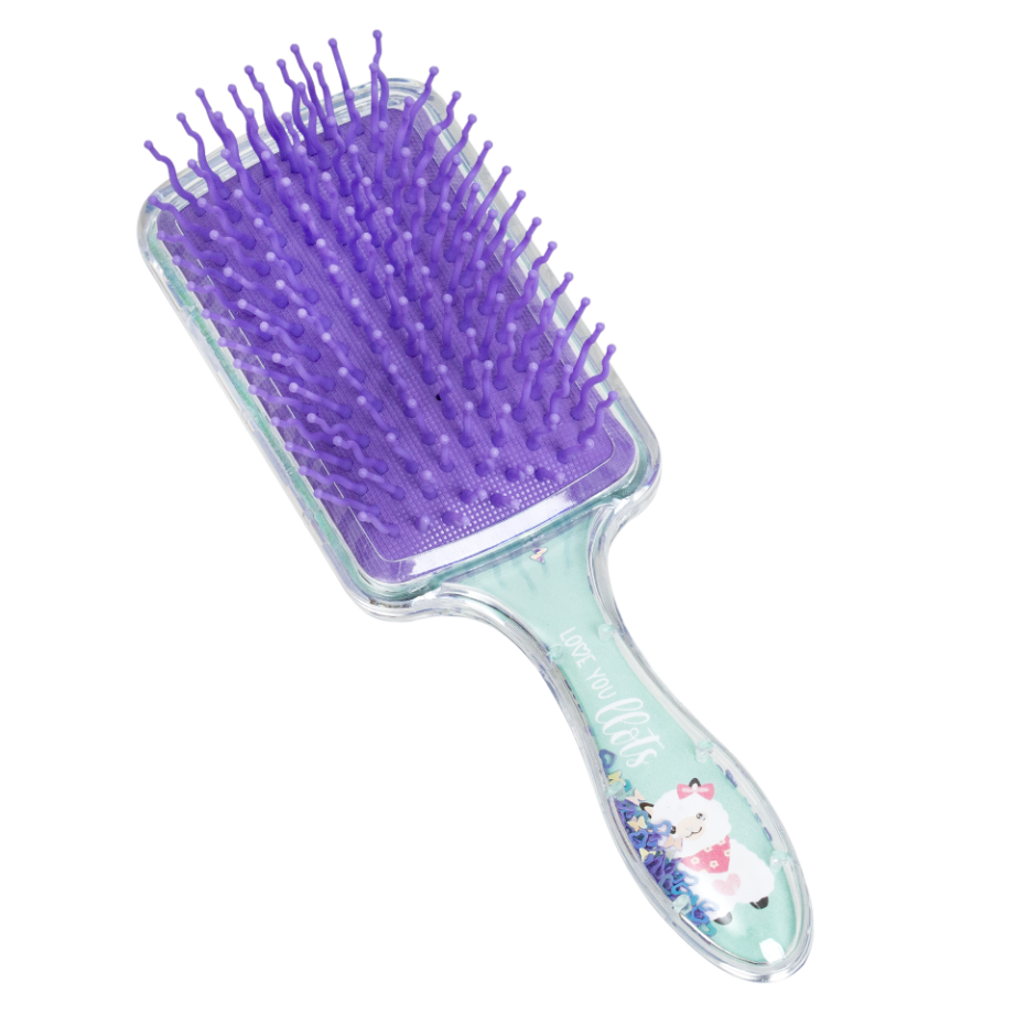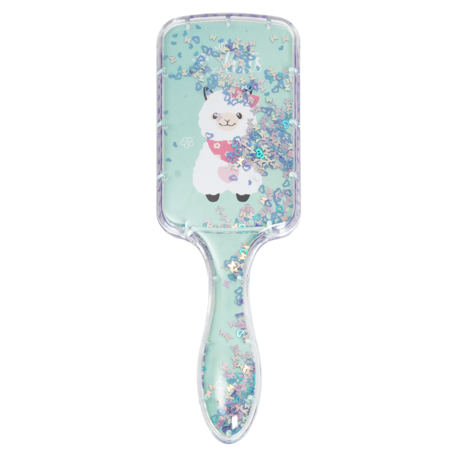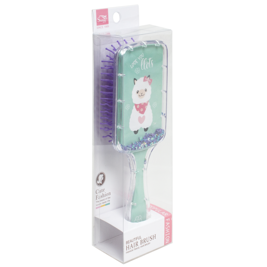 Дитячий гребінець для волосся з блискітками всередині. Особливістю гребінця є його дизайн – наявність блискіток у прозорому корпусі. При нахилі гребінця, блискітки починають також переміщатися, красиво розсипаючись. Розмір гребінця без упаковки - 21,7 * 8 * 4,5 см. Розмір індивідуальної упаковки становить 8,5 * 4,7 * 22 см. Тематика - альпака.