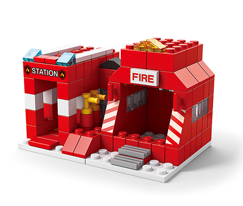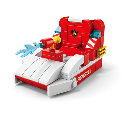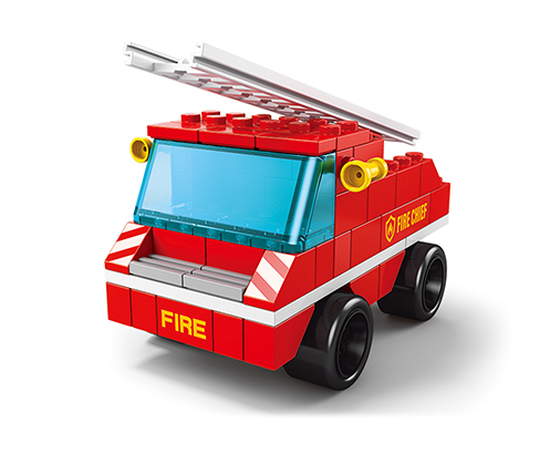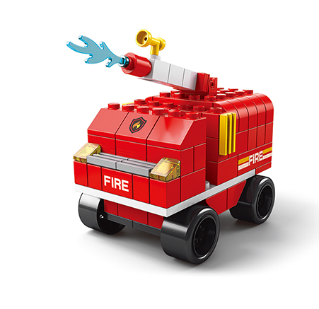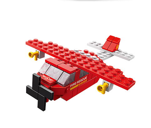 З 1000 деталей можна зібрати 6 окремих елементів: пожежний гелікоптер, пожежний літак, пожежну станцію, пожежний скутер, пожежну машину - 2 штуки. Всі елементи об'єднуються у великий виріб - пожежний трак. Конструктор легосумісний, у кожній упаковці є інструкція – детальна, кольорова, наклейки для оздоблення готових виробів, деталі, посортовані в пакети. Елементи конструктора вироблені з пластику. Конструювання розвиває дрібну моторику та допомагає тренувати координацію рухів.