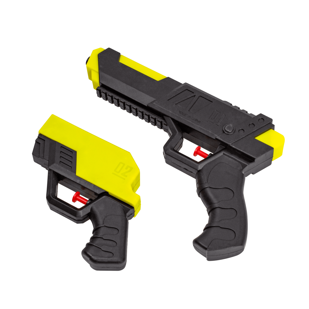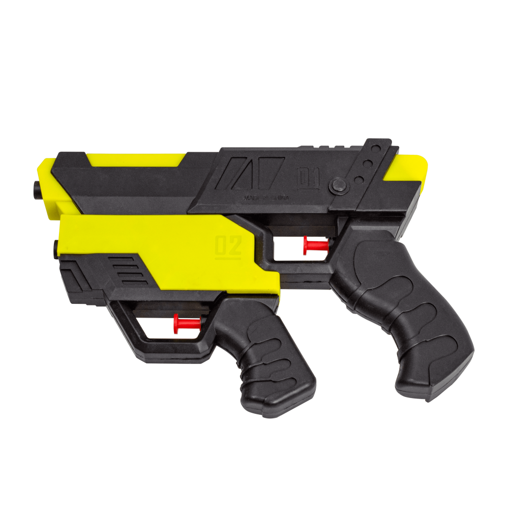 Особливістю іграшки є можливість трансформувати дві зброї в одну і навпаки. Іграшка стріляє на відстань до 7-8 метрів. При натисканні на курок здійснюється постріл. Розмір іграшки без упаковки – 21*15,5*3 см. Об'єм резервуару для води: 300 мл.