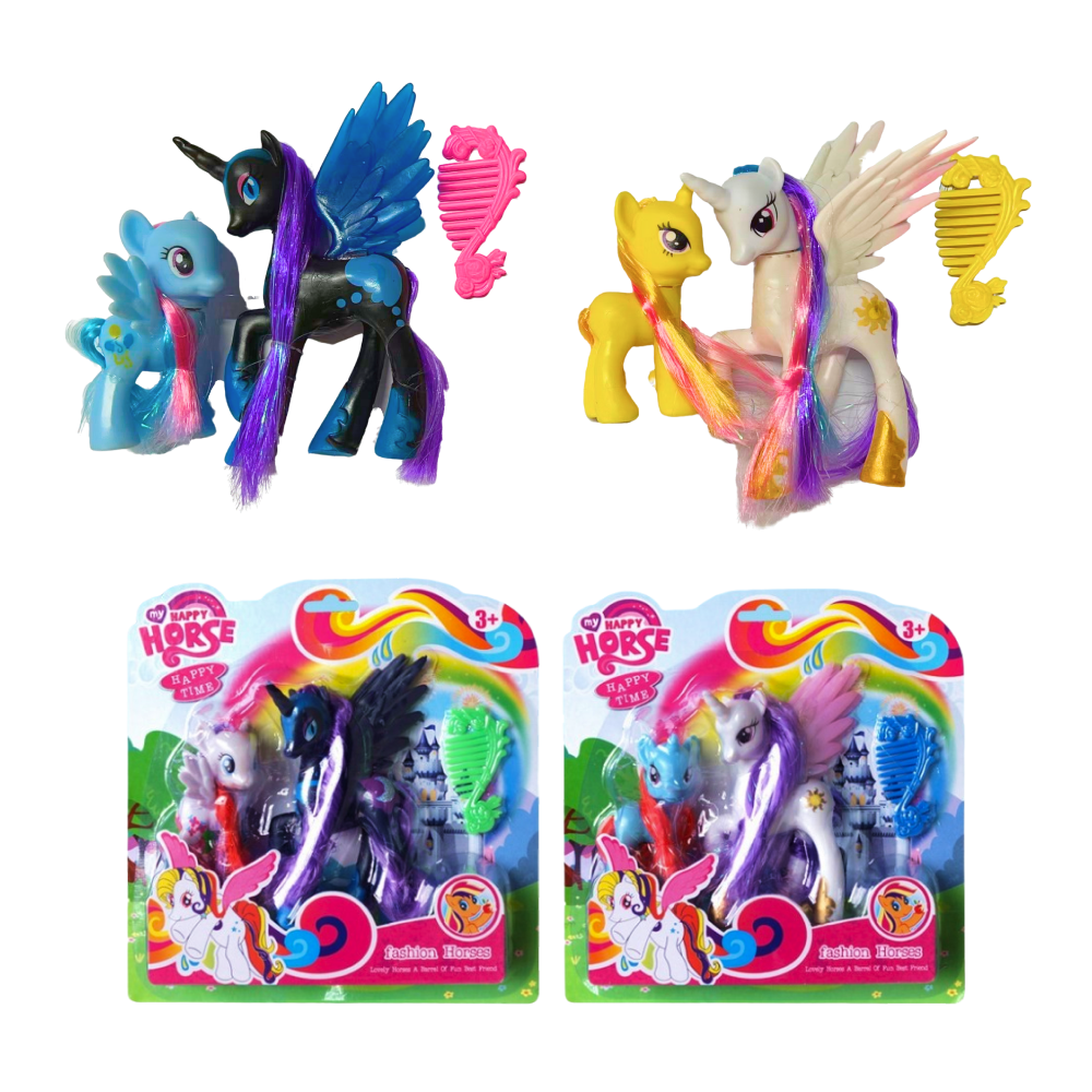 Набір ігрової "Поні-принцеси". Поні та єдинороги це неодмінні персонажі в іграшковій колекції дівчаток. У наборі дві поні та аксесуари з догляду за їх чарівним довгим волоссям.