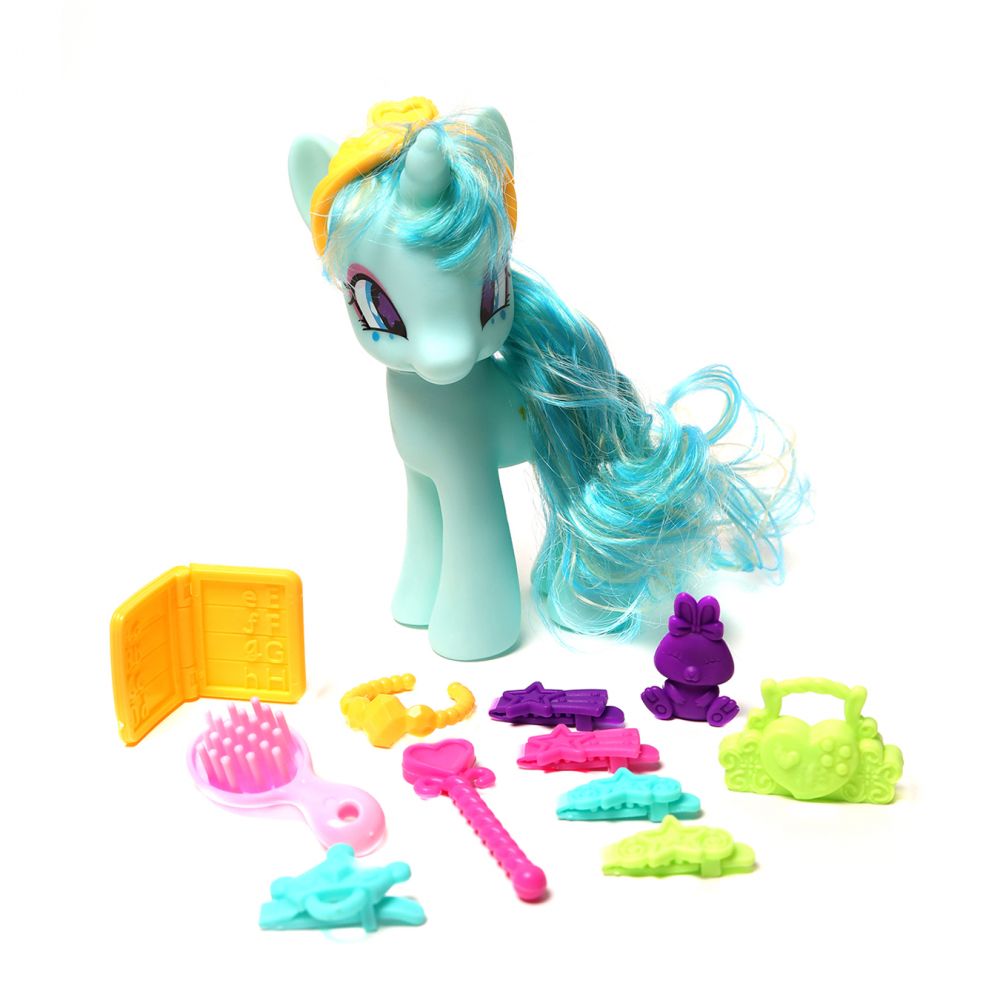 Набір ігровий "Єдиноріг" з аксесуарами. Чарівна іграшка стане кращою подружкою для дитини! Єдиноріжка має гарне яскраве забарвлення та шовковисту гриву. У набір входить гребінець та інші аксесуари, за допомогою яких малятко зробить красиві зачіски та підбере незабутні образи. Гра з одноріжкою розвиває уяву, емоційне та кольорове сприйняття, дрібну моторику.