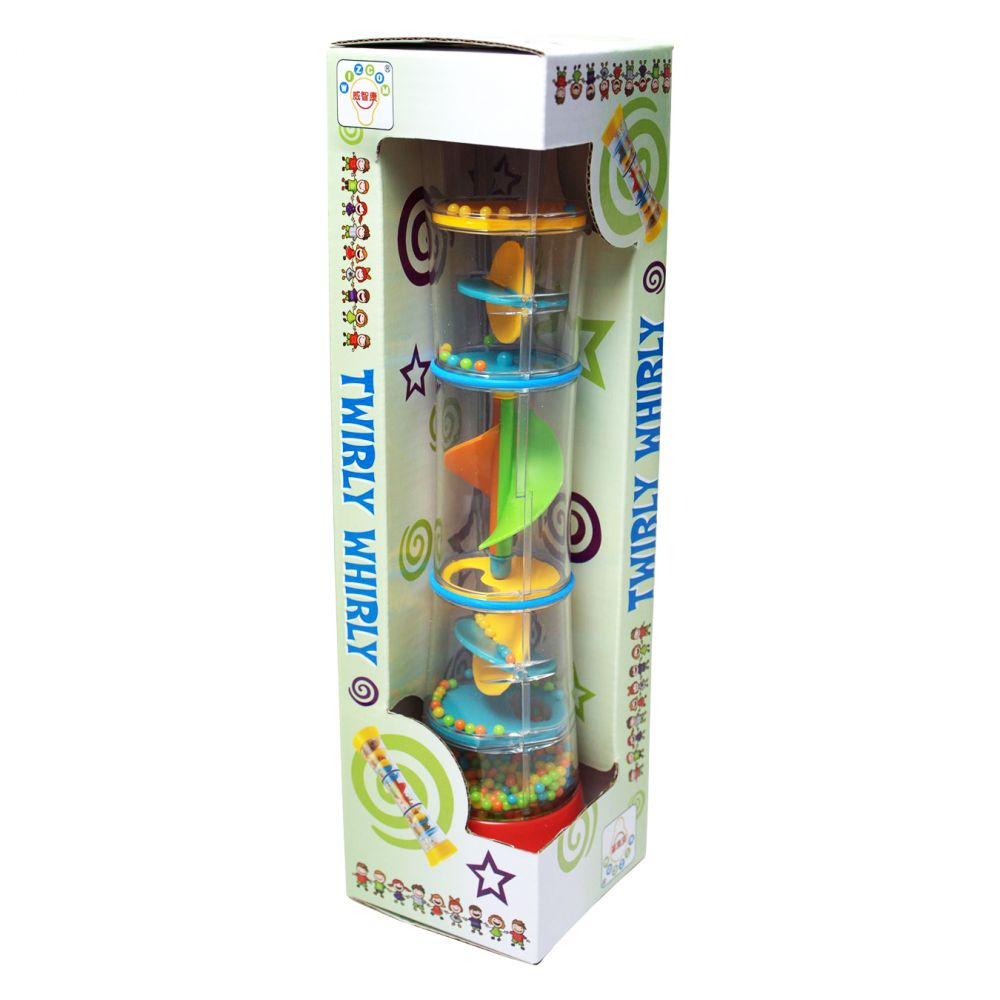 Погремушка "Дощик". Усередині прозорого корпусу брязкальця знаходяться дрібні кільцеві кульки та різнокольоровий лабіринт. Скочуючись вниз лабіринтом, кульки видають приємні заспокійливі звуки. Бісерний дощ стимулює слухове та зорове сприйняття. Форма іграшки створена спеціально для дитячих ручок, завдяки чому брязкальце легко захоплювати і зручно тримати. Це сприяє розвитку дрібної моторики та хапального рефлексу малюка.
