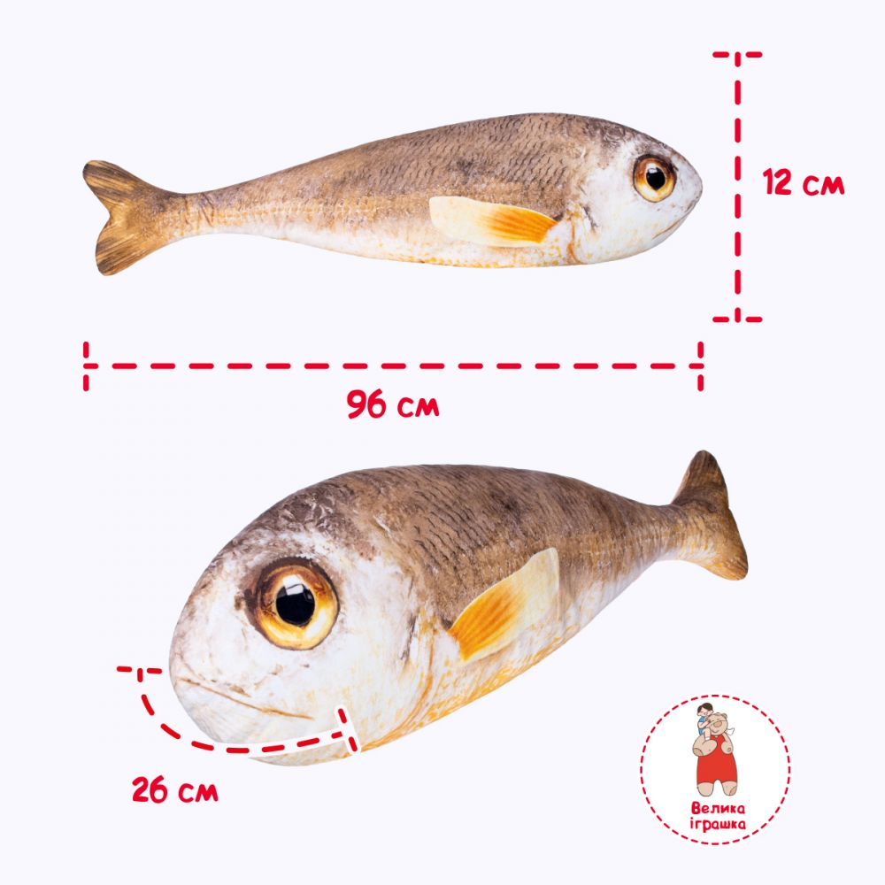 М'яка іграшка "Горбиль" - це незвичайний презент для дітей і дорослих. Приголомшливий ефект реальної риби передає якісний друк на тканині, забезпечуючи яскраві і натуральні кольори. У риби всередині щільна набивка поліефірним волокном, що дозволяє використовувати іграшку, як декоративний елемент, для створення затишку в домі, або відмінний аксесуар для фотосесій.