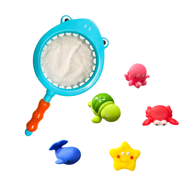 Цей набір перетворить час у ванні на веселе і пізнавальне заняття для вашої дитини. У комплект входять барвисті фігурки морських жителів, серед яких кит, краб, морська зірка, черепашка та восьминіг. Окрім фігурок, набір містить сачок, спеціально розроблений для маленьких ручок, яким ваша дитина зможе ловити морських жителів під час купання. Гра в "Рибалку" допоможе розвинути координацію рухів, моторику та уяву вашої дитини.