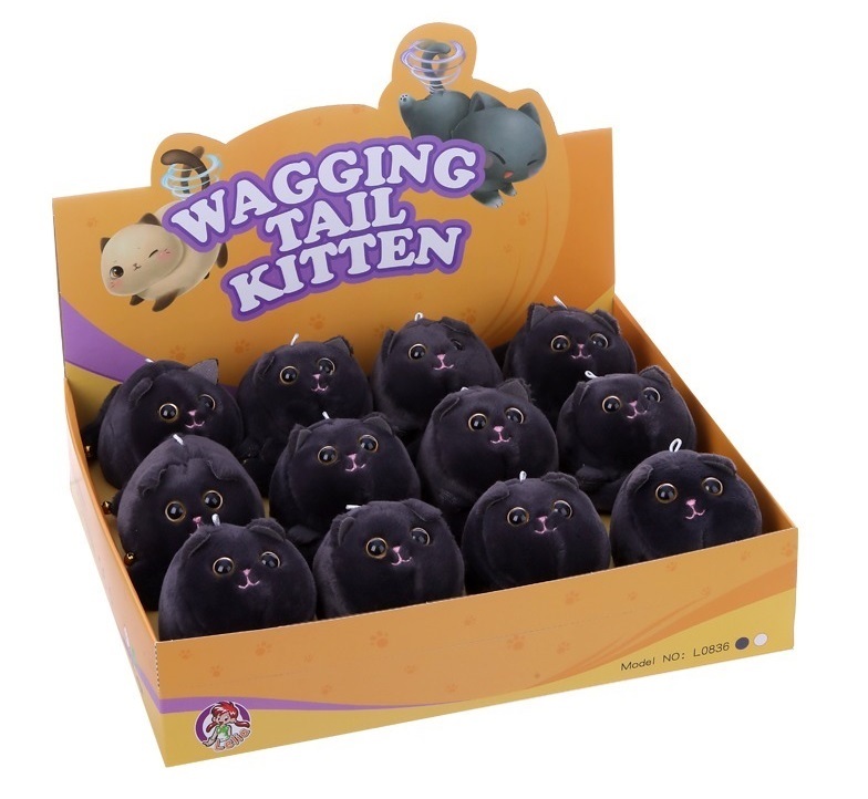 Інтерактивна іграшка Котик- це кумедна іграшка, яка розважить і дитину, і дорослого. Варто потягнути за кільце, розташоване під хвостиком кота і хвіст іграшки швидко закрутиться. На кінчику хвостика розташовано кульку, яка при цьому дзвенітиме.