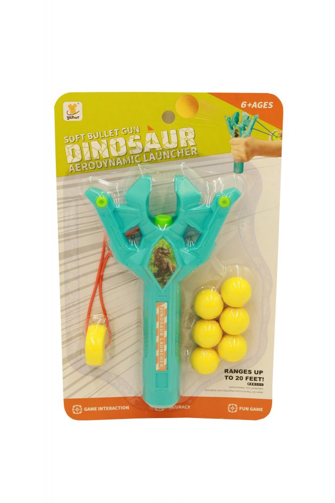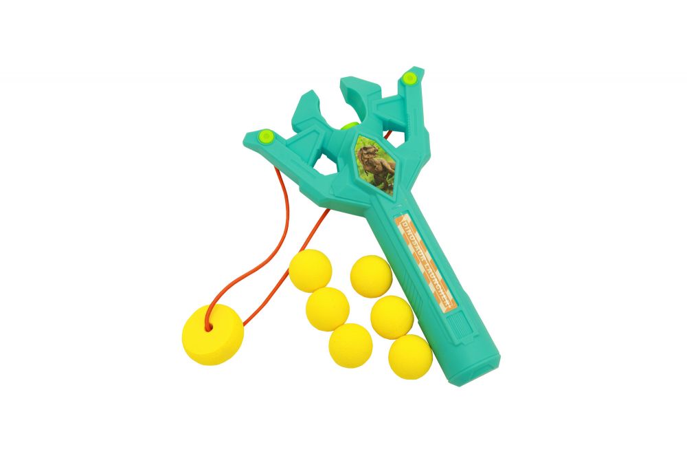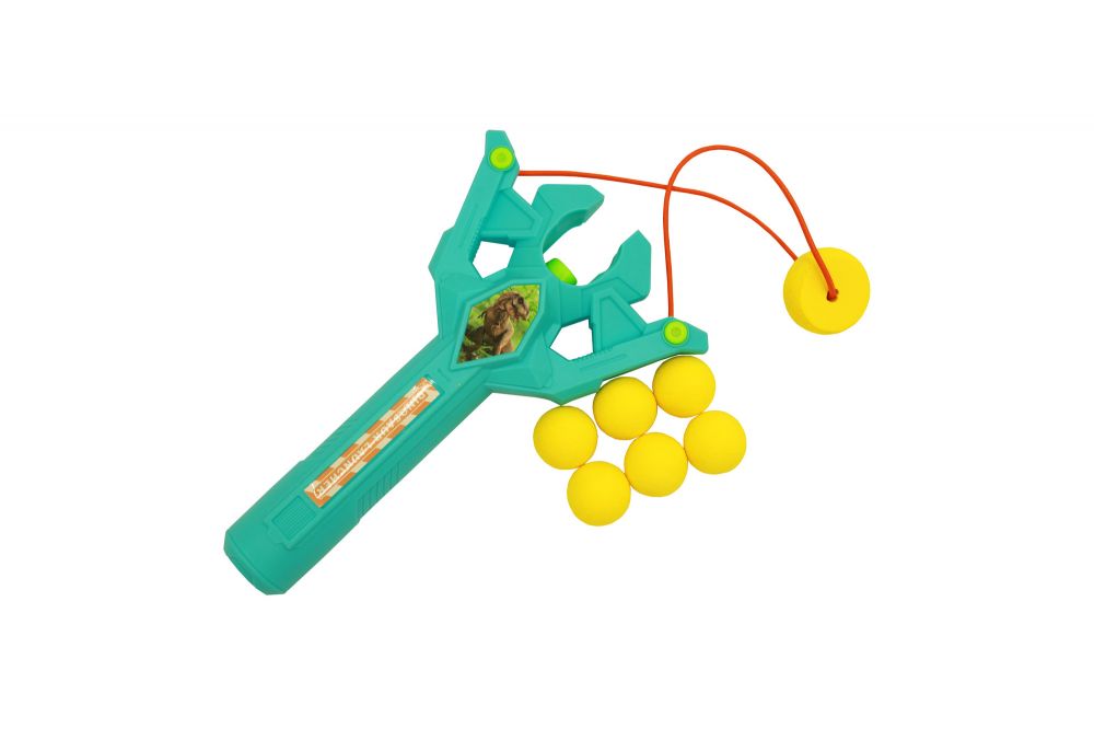 Дитяча рогатка, що стріляє м'якими кульками. М'ячик встановлюється спеціально відведене під нього місце. Потім потрібно натягнути гумку на себе і відпустити. Стріляє на відстань до 8 метрів. У наборі рогатка та 6 м'ячиків. Діаметр м'ячика 2,5 см. Розмір упаковки – 19,4 х 12,1х 3,5 см.