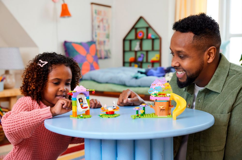 Іграшковий будиночок на дереві з безліччю ігрових можливостей Ґаббі, помічник Пенді і Фея Кітті з популярного серіалу пʼють чай у будиночку на дереві, де у Феї Кітті є ліжко й полуничні ласощі. У будиночку ростуть квіти для юних садівників, а також є гірка, гойдалка й карусель, на яких можуть гратися друзі. Аксесуари, як-от яблука, лійка, чайник, чашки й метелики, надихають дітей на творчі сюжетні ігри. У набір входить яскрава ілюстрована інструкція, а в додатку LEGO Builder — зрозумілі інструменти для масштабування та обертання. Як і в усіх наборах LEGO для дітей віком від 4 років, до набору входить великий кубик для початківців, що дає змогу одразу ж розпочати конструювання.