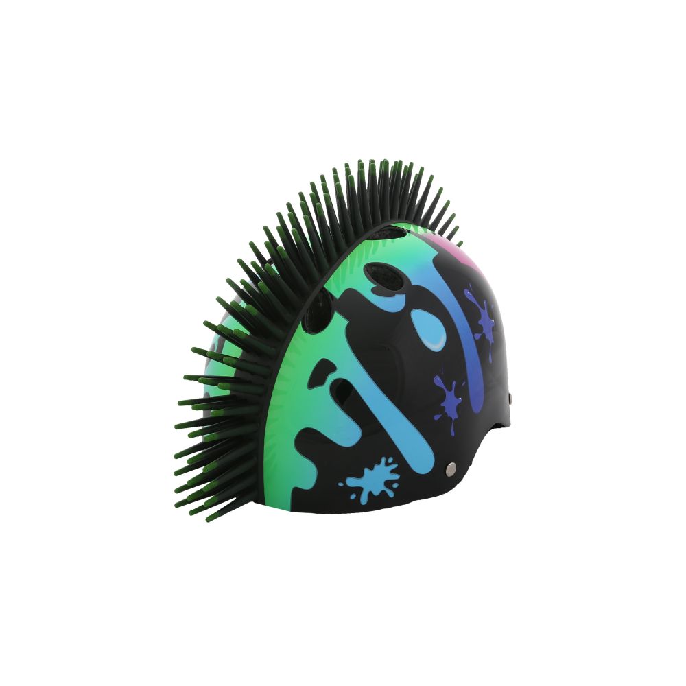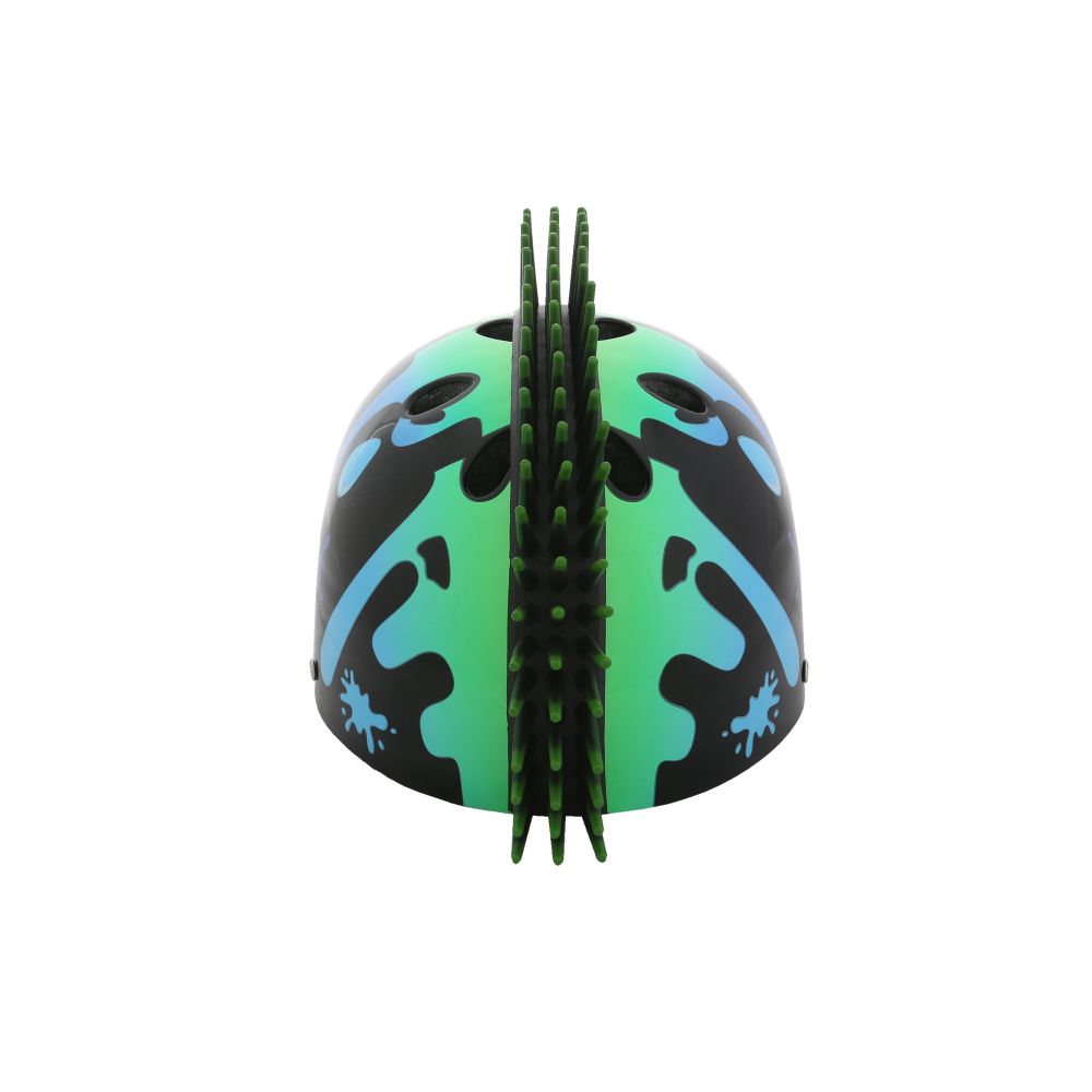 Шолом виконано у стильному чорному кольорі з ефектом глянцу, на шоломі розташовані яскраві градієнтні зелено-сині узори, схожі на розтікшийся слайм. Прикрашають цей шолом об'ємні зубчики в декілька рядів вздовж шолома, які імітують ерокез.