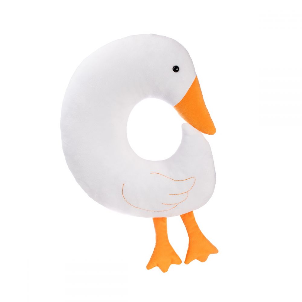Яскравий та м'який валик у формі гуся нікого не залишить байдужим! Він відмінно підійде для тривалих поїздок в автомобілі, створюючи при цьому комфортні умови для здорового і міцного сну. Подушка підтримує голову і знімає напругу з шиї. Розмір іграшки 30х33х8 см.