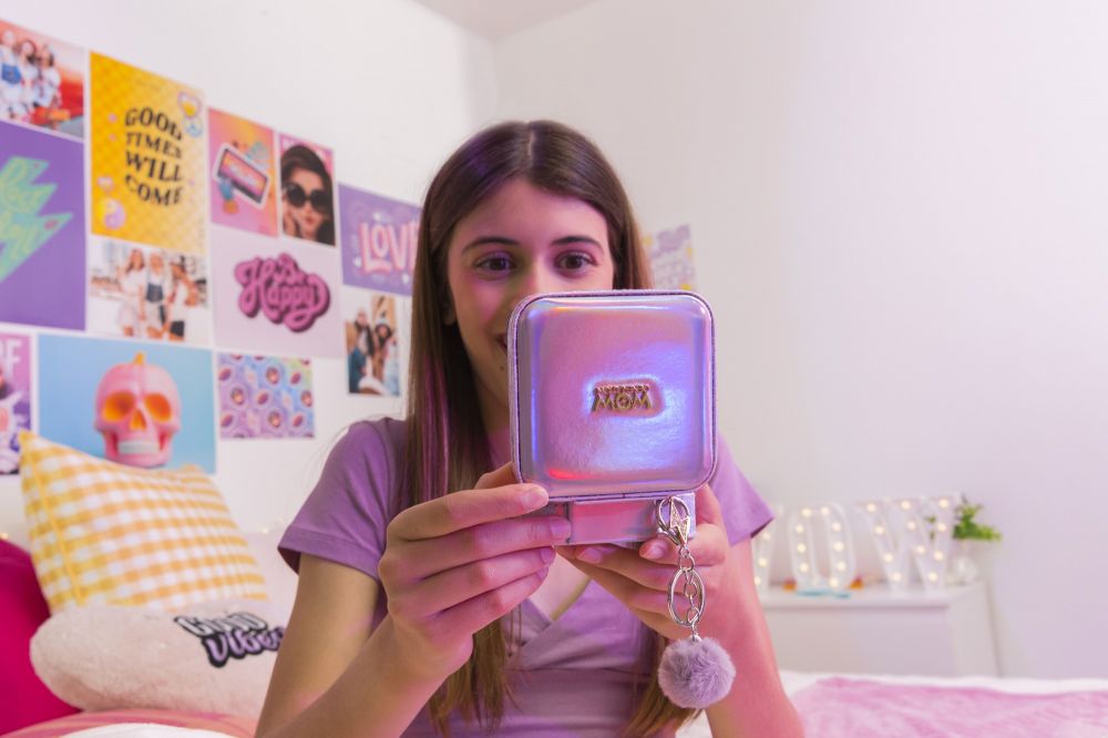 Компактний дизайн у ніжно-рожевому відтінку з голографічним блиском робить її не лише практичною, а й модною деталлю інтер’єру. Всередині є окремі відділення для кілець, сережок, браслетів та ланцюжків.
