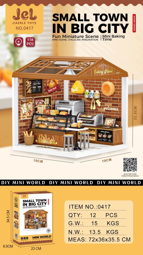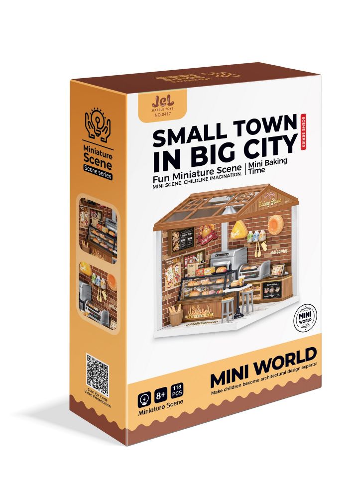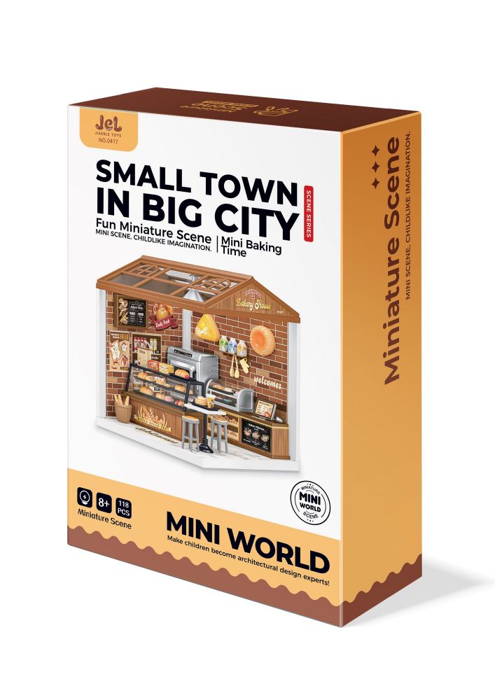 Пориньте у чарівний світ мініатюр з набором Міні-пекарня. Це унікальний конструктор-сцена з 118 деталей, що дозволяє зібрати затишну пекарню з вітриною, випічкою та кухонним обладнанням.