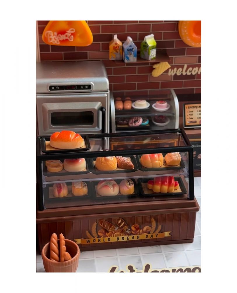 Реалістичні аксесуари: хліб, круасани, тістечка, коробки з вівсянкою та інші деталі.