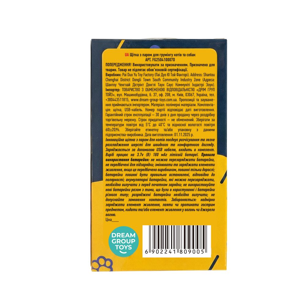 Щітка з паром для грумінгу котів та собак FG250410007D