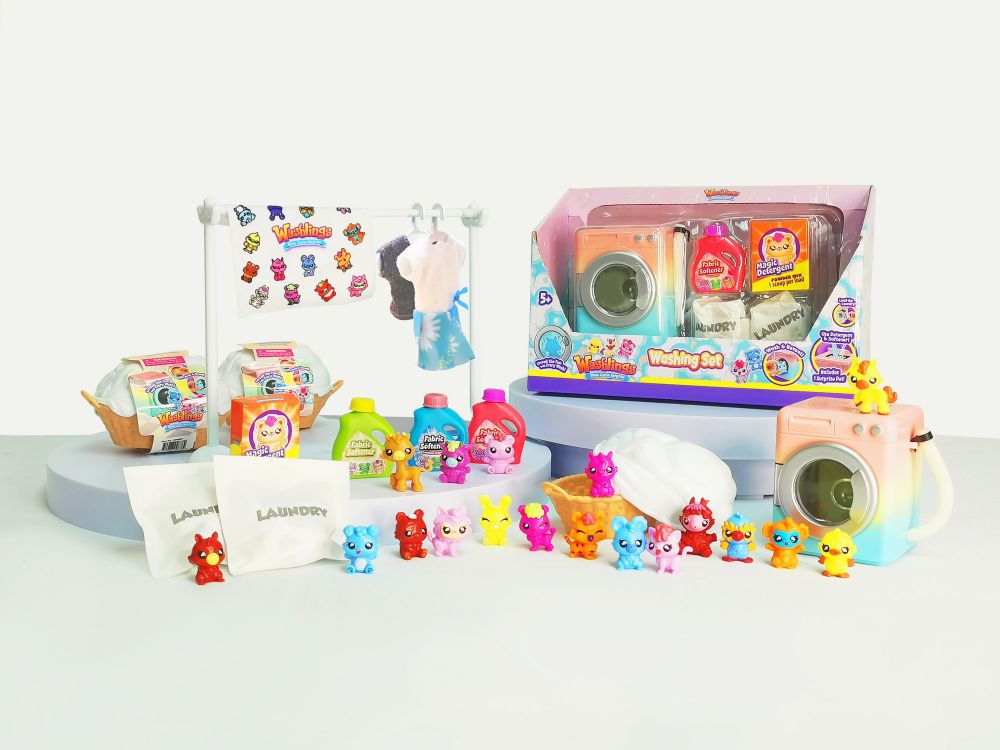 Відкрий магію прання разом із Washlings! Це унікальний ігровий набір, що поєднує інтерактивну гру та колекціонування. Мініатюрна пральна машина працює як справжня – завантажуй сюрпризи у мішках для білизни, додавай мийний засіб і кондиціонер, вмикай «прання» та відкривай яскравих пухнастиків!