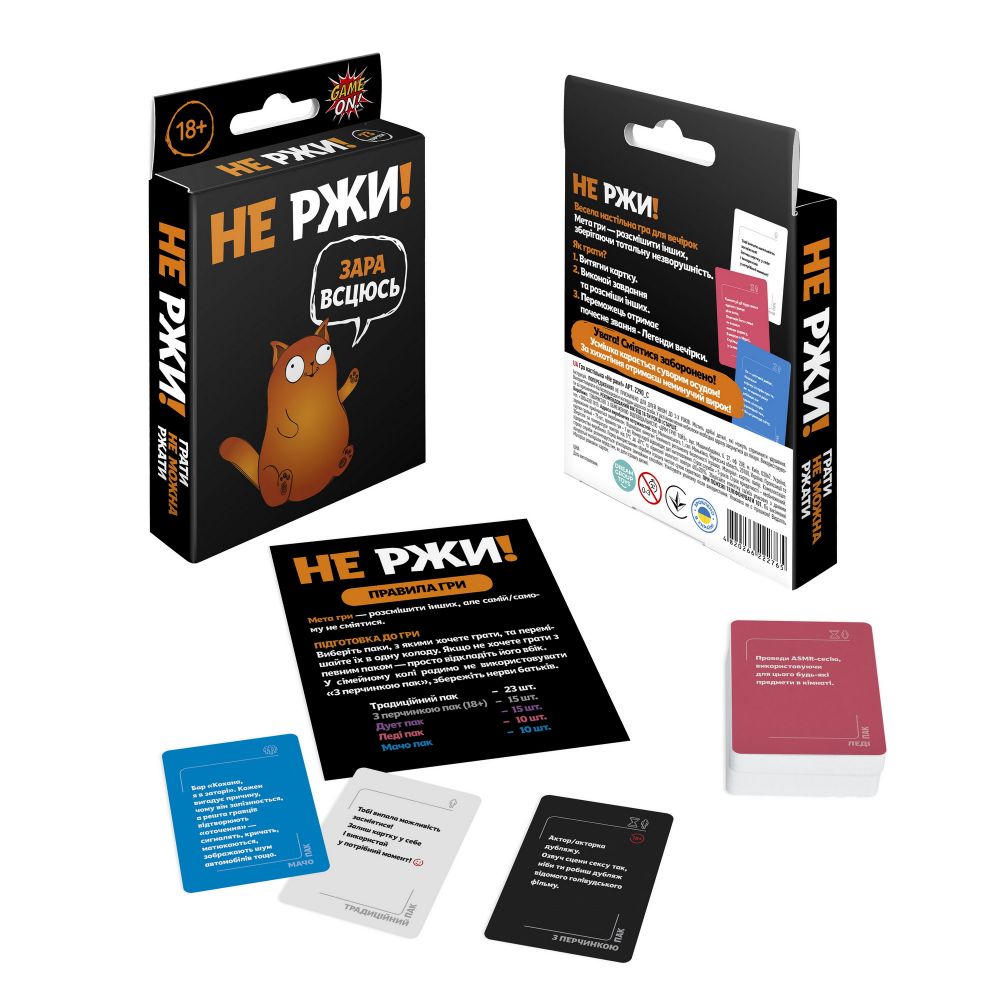 Учасники по черзі тягнуть картки із завданнями, виконують їх і намагаються не зареготати.