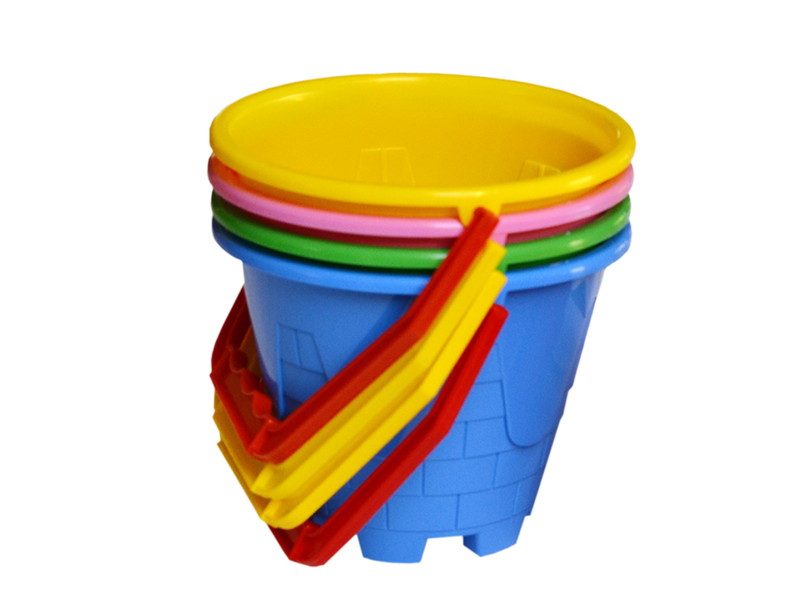 - Яркое ведёрко в форме башни старинного замка с удобной ручкой для игры в песке и саду.