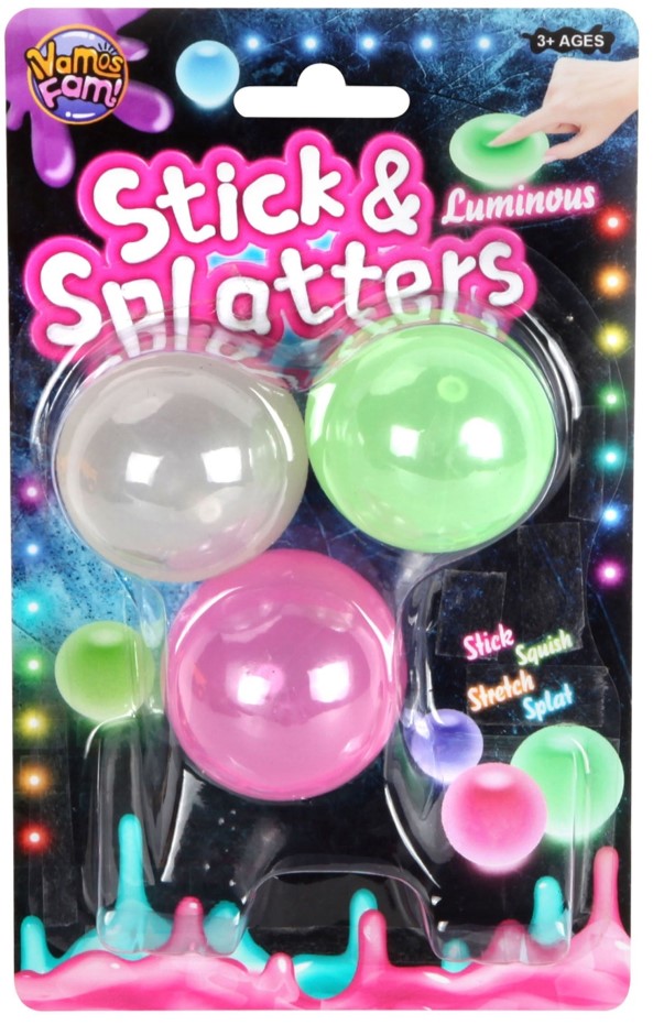 Липка кулька-антистрес діаметром 4 см. У комплекті 3 кульки. Кульки можна кидати, стискати, розтягувати, перекидати один одному. Вони прилипають до стіни та до стелі (не рекомендується використовувати на натяжних та дерев'яних видах стель). Для того, щоб кульки світились у темноті, їх необхідно потримати під світлом протягом 10-15 секунд. При сильному забрудненні кульки можна помити під теплою водою, насухо витерти рушничком.