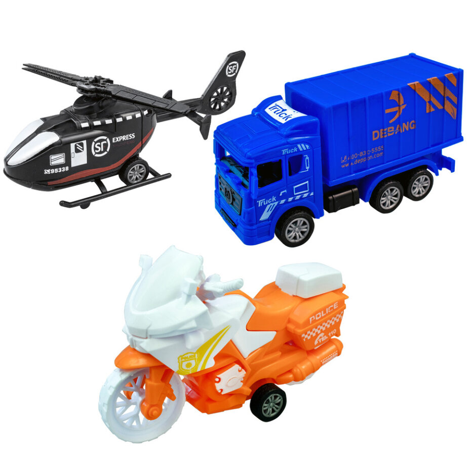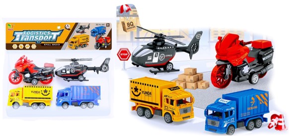 Набір "Спецтехніка: Логістичний транспорт" - це захоплюючий набір іграшок, створений для найменших любителів автомобілів та великої спецтехніки. Цей набір містить чотири різнобарвні транспортні засоби, які включають дві машинки, мотоцикл та вертоліт.