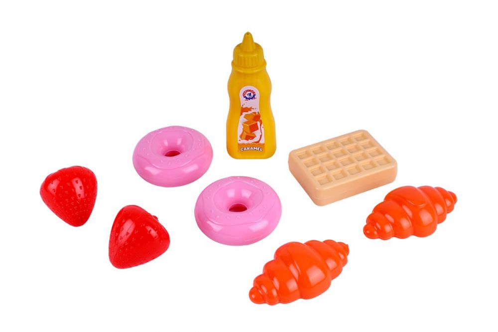 Іграшковий набір "Десерт ТехноК" неодмінно сподобається хлопчикам та дівчаткам. Він ідеально підійде для захопливих сюжетно- рольвих ігор в ресторан, кафе чи супермаркет. Іграшкова їжа доповнить дитячі кухні та зробить ігри реалістичними та цікавими. Тепер можна запросити друзів та улюблених іграшок на чаювання зі "смачними" десертами. Пончики, круасана та вафлі у наборі мають реалістичний вигляд та приємний колір. Зручний розмір іграшок спеціально розрахований для дитячих рук. Він також добре підходить до іграшкового посуду, візочків та кошичків ТехноК.