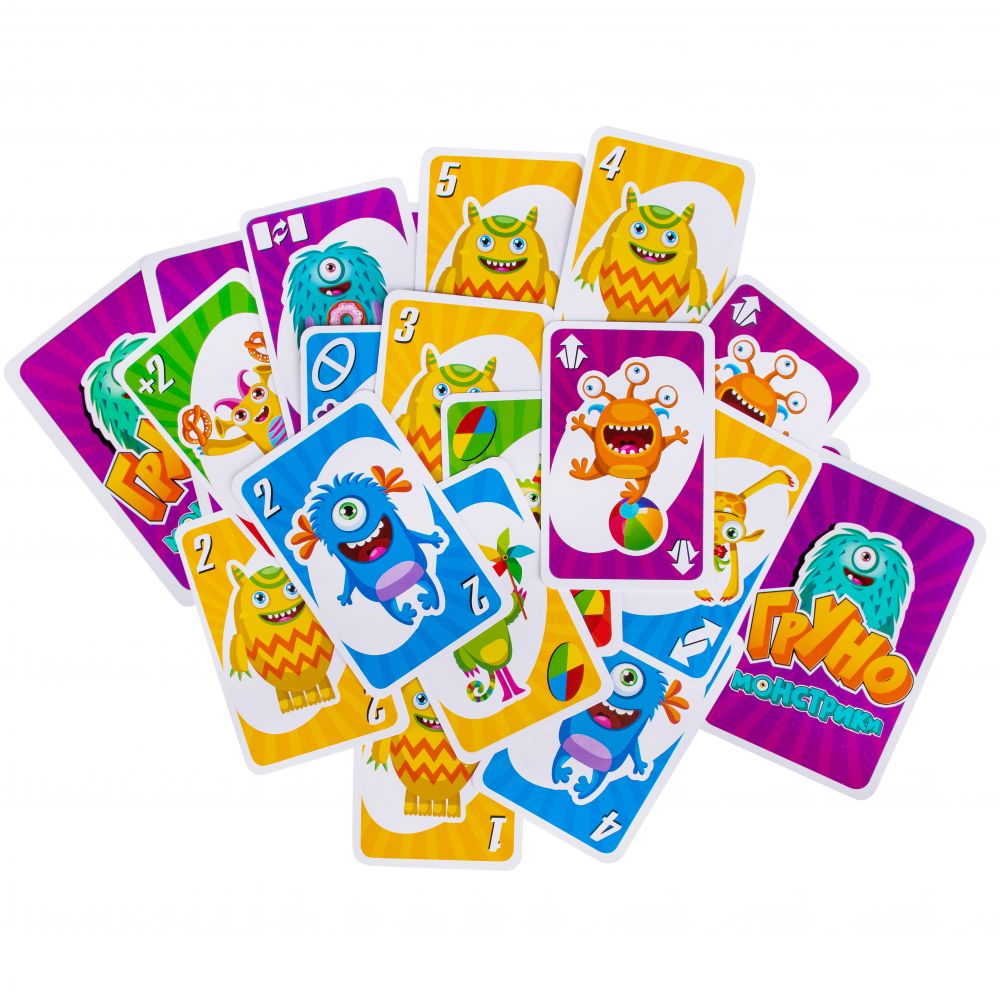 "Груно" - легко грати, неможливо відірватися! Неймовірно весела гра на реакцію, уважність та стратегію! Мета гри – першим позбавитися всіх своїх карт. Прості правила, яскраві образи монстриків та динамічний ігровий процес роблять цю гру незамінною для будь-якої вечірки або для проведення часу із сім'єю. Гра розвиває моторику, реакцію, асоціативні навички та дарує безліч позитивних емоцій. Комплектація: Ігрові картки: 35 шт.; Правила гри: 1 шт.
