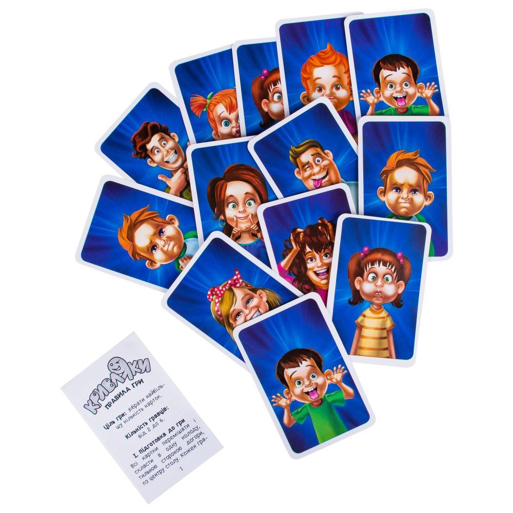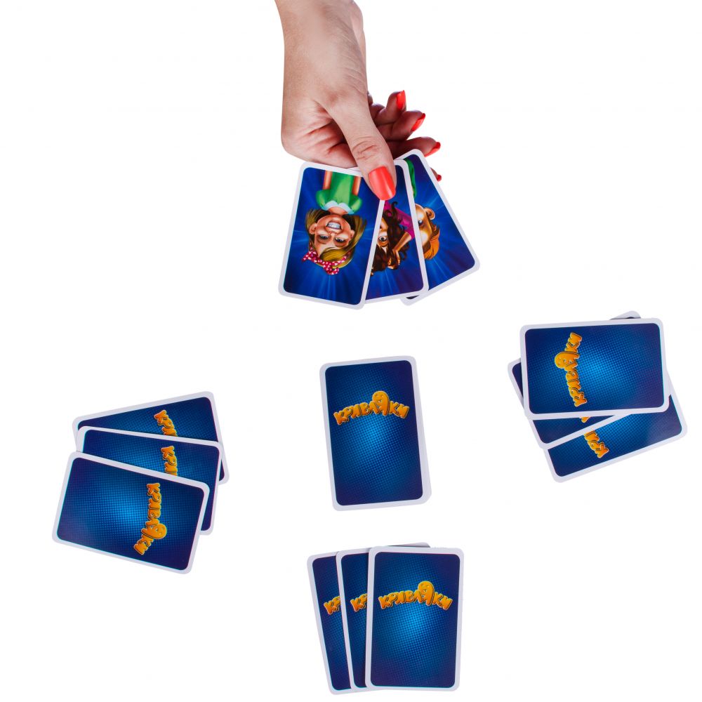 "Кривляки" - весела гра в емоції! Мета гри проста – зібрати колекцію однакових карток. Вибирай ту картку, яка тобі потрібна, і точно повторюй міміку і жести намальованого на ній персонажа. Інший гравець має таку саму картку? Забирай її собі! Ні? Тоді він дасть тобі про це знати, висунувши язика. Перемагає той, хто збере якнайбільше карток. Гра розвиває творче мислення та асоціативні навички. Комплектація: Ігрові картки: 33 шт.; Правила гри: 1 шт.