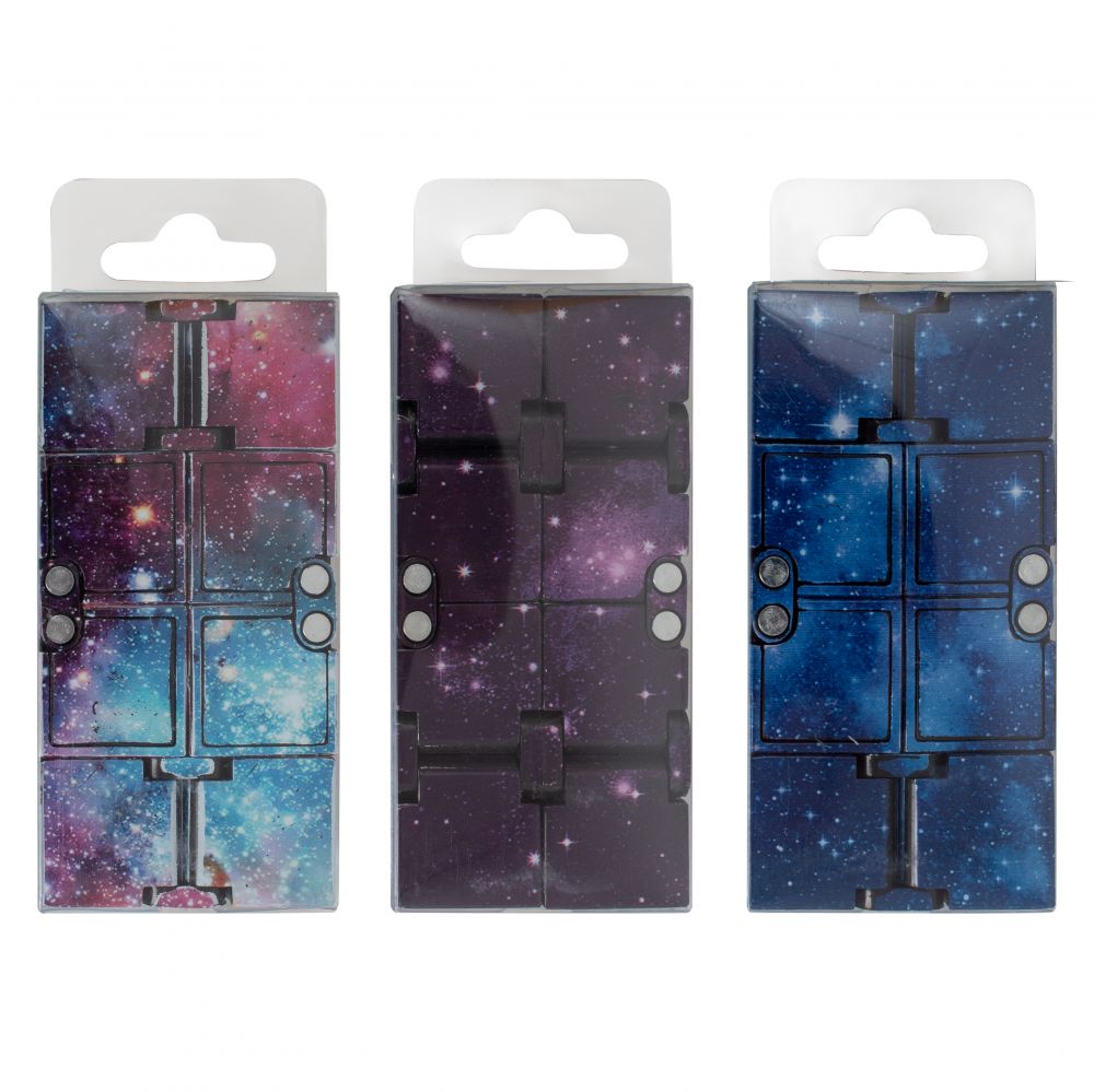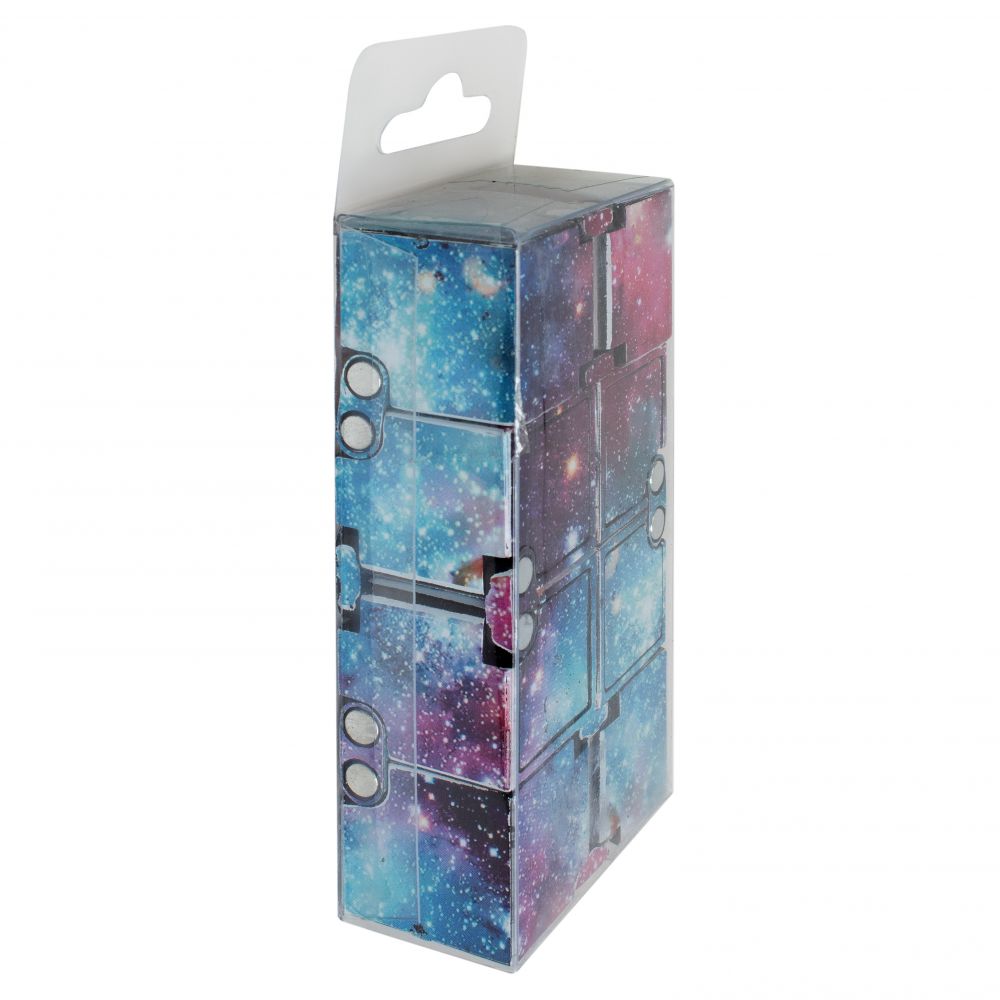 Кубик із космічним принтом розбирається у паралелепіпед і назад. Його можна складати та розбирати нескінченну кількість разів.