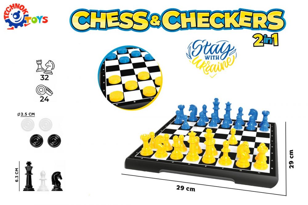 Набір "Шахи та шашки" в патріотичних синьо-жовтих кольорах стануть чудовим подарунком дітям і дорослим.